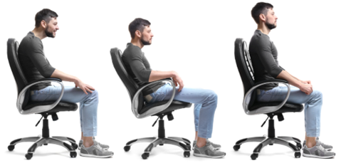 Be mindful of your posture during everyday activities – using a computer or handheld device, walking, and standing. Your office chair needs to be aligned to support a natural, healthy spinal position. Remember to take breaks and walk around to promote circulation and flexibility.